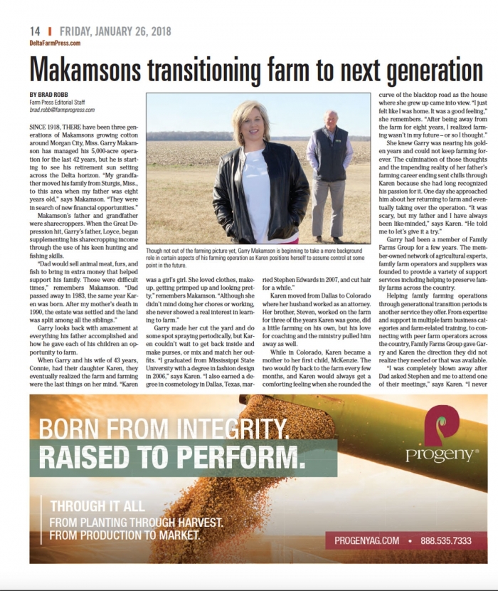Karen Edwards and her father, Garry Makamson, farm in Leflore County, Miss. They are working together to transition Garry's operation to Karen, who will continue the farming legacy.